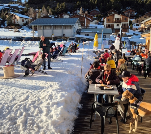 Dans la file d'attente du télésiège du Vallonet, patientez agréablement et utilement : une demi...