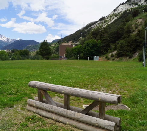 Le stade d'Avrieux se trouve en contre-bas du village : terrain de foot, terrains de tennis,...