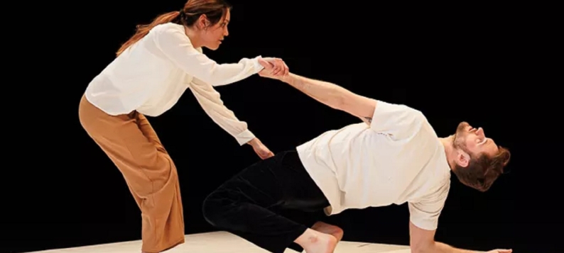 Compagnie Lamento. Lui est grand, fort, elle fragile sur son fauteuil roulant. Tels des funambules, ils dansent sur une ligne, ligne de faille qui devient ligne de force. Une pièce emplie d'humour et de délicatesse, qui sublime les fragilités.