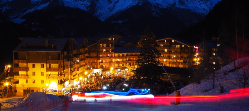 Descente aux flambeaux de l'ESF sur la piste des Bettets, à côté du départ de la télécabine d'Arrondaz. Vos moniteurs vous feront vivre de belles émotions.