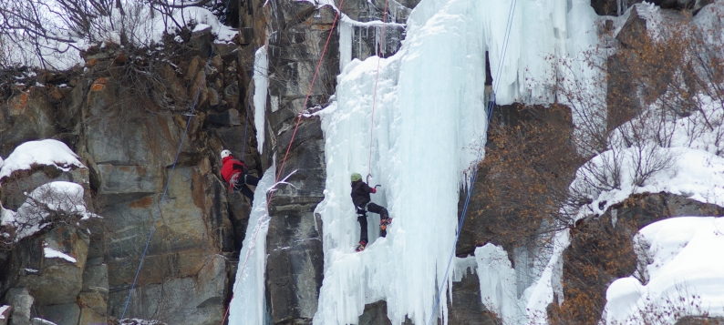 - La falaise des Barmettes : falaise englacée au site de Biathlon