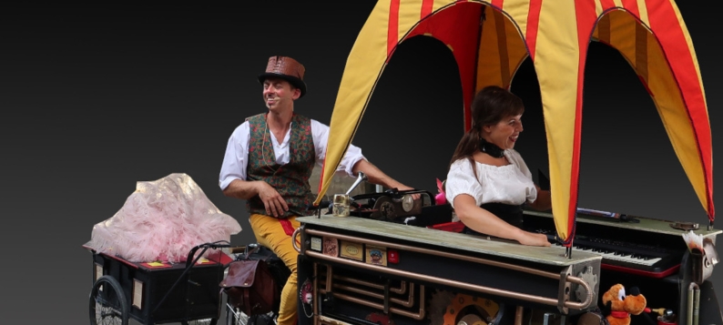 A la croisée des chemins entre les constructions de Léonard de Vinci et l’imaginaire romanesque de Jules Verne, se trouve l'univers d'Oscar et Florette et leur machine Zinzibulle. Un spectacle déambulatoire musical interactif pour toute la famille.