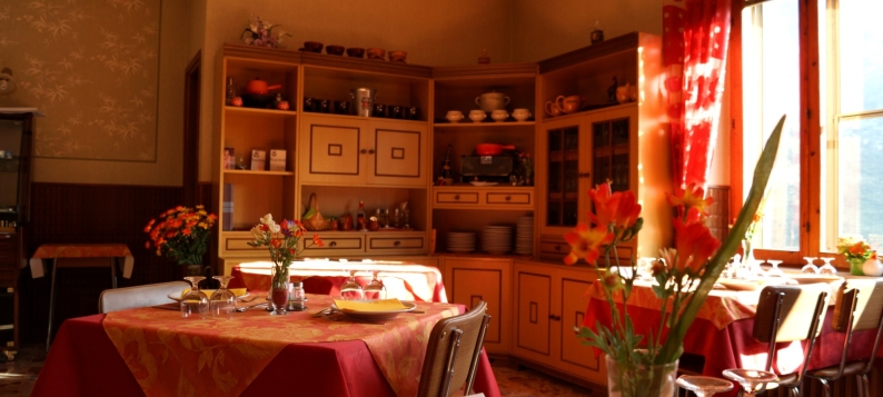 Possibilité de dormir en chambres 2-3-4 personnes avec vue sur l’ancienne route Napoléon.
