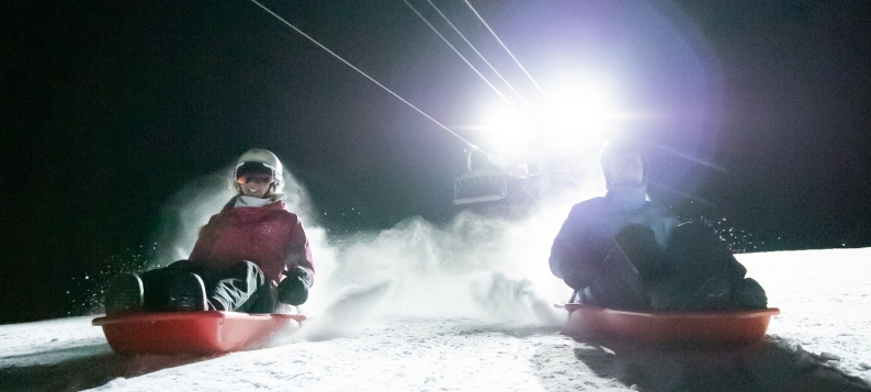 - Enfants à partir de 5 ans : autorisés accompagnés d'un adulte sur la luge