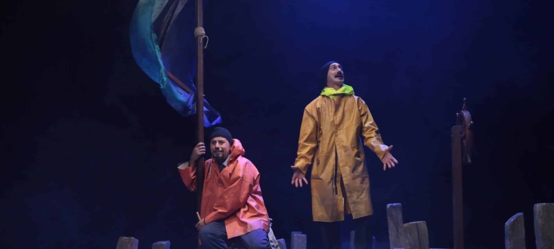 Cie Teatro Picaro. Sur un ponton suspendu, un homme affolé par ses doute croise le chemin d'un pêcheur Le début d'un voyage rocambolesque qui questionne avec ironie et tendresse notre besoin insensé de perdre ce qu'on possède pour en mesurer la valeur.
