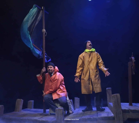 Cie Teatro Picaro. Sur un ponton suspendu, un homme affolé par ses doute croise le chemin d'un...