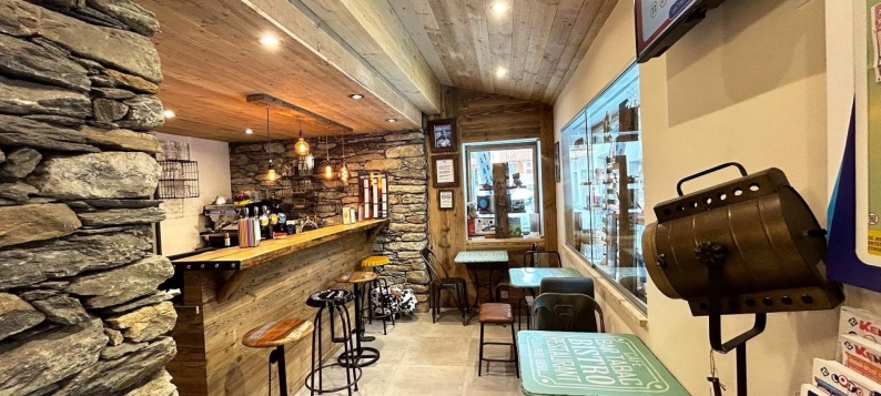 Terrasse ensoleillée et intérieur chaleureux, cafés, cocktails (génépito, spritz classique et revisté...), différentes bières de Savoie à la pression, soft savoyard, presse, librairie, FDJ.