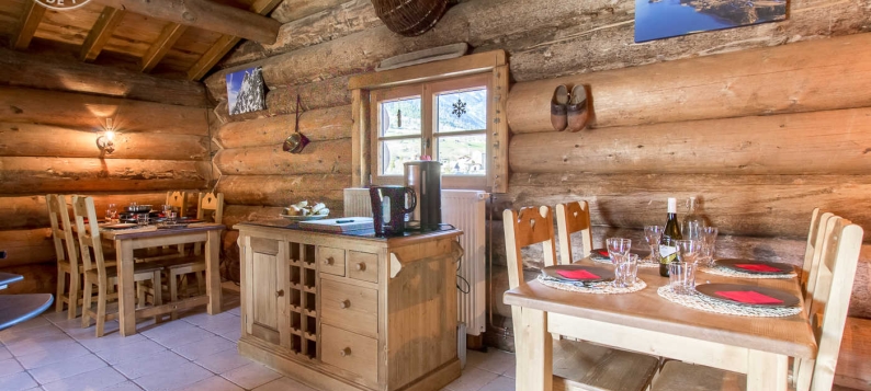 A découvrir ! Un hébergement atypique pour une expérience unique dans une ambiance Grand Nord aux portes du Parc national de la Vanoise. "Ma cabane en montagne" propose 4 chalets en bois bruts avec toiture végétale. Mobilier, décoration et services pro... Chalet de rondins de bois bruts avec toiture végétalisée. Un lit 2 personnes + 2 lits 1 personne (draps inclus, lits faits). Literie écologique 100% pur laine. Toilettes sèches privatives. Espace détente avec canapé convertible pour un couchage 1 personne et table basse. Réserve d'eau potable dans un huilier en inox. Chauffage avec poêle à bois. Terrasse abritée privative + espace extérieur commun. Salle d'eau commune dans une cabane indépendante (2 douches + 2 lavabos). Prestation en demi-pension exclusivement. Hébergement insolite dans 4 authentiques fustes en bois des Alpes. Conception écologique dans la construction et l'aménagement des chambres. Environnement immédiat naturel et préservé offrant calme et vue panoramique sur les montagnes et la célèbre Dent Parrachée. Décoration soignée valorisant un art de vivre "déconnecté" tourné vers la simplicité et la nature. La demi-pension fait partie intégrante du concept. Elle est à régler en supplément, sur place lors de votre séjour - 17 euros le repas du soir (8.50 euros pour les enfants -12 ans) - 8 euros le petit déjeuner (4 euros pour les enfants - 12 ans).