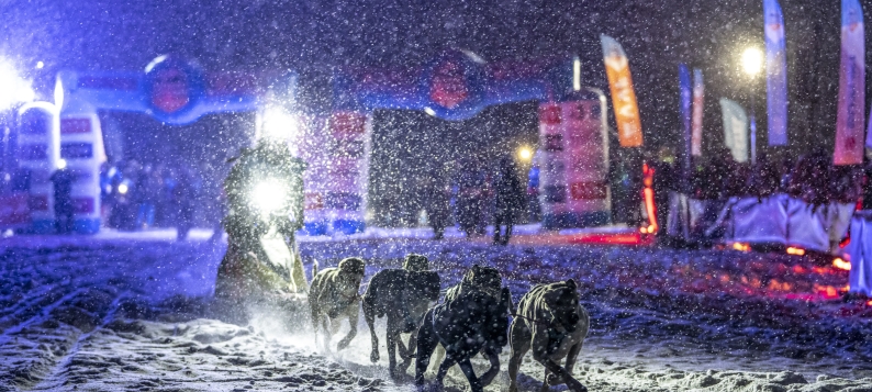 - Continuous departures of sled dog teams from the snow front: 3 pm to 4 pm