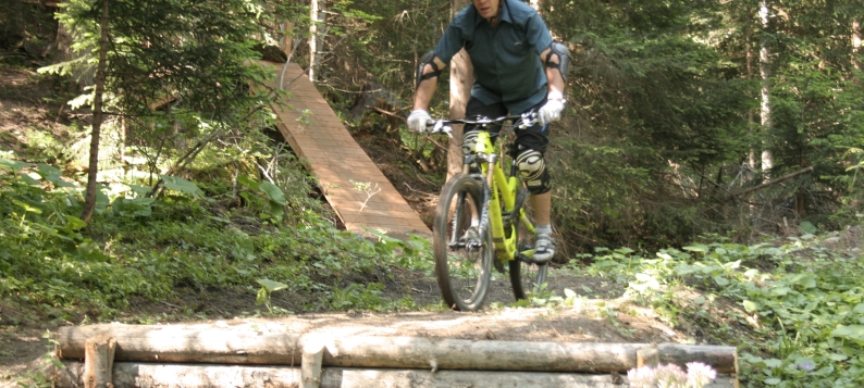 La Repose bike park has 3 levels of difficulty: green, blue and red. There are also pipes.