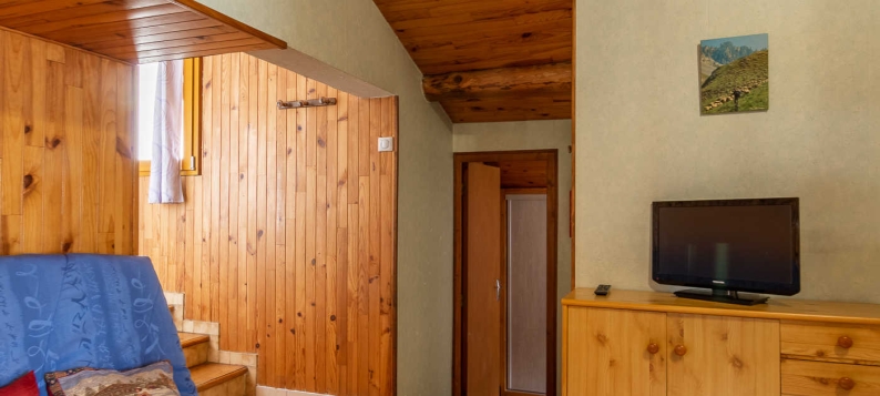 2 apartments in the house of the owner. 1st floor: kitchen-lounge area (1 convertible 2 people.), Wifi, 1 bedroom (2 beds 1 person), Bathroom with shower, enclosed common ground. Contemporary country house on the slope of southern sunny hillside. Quiet residential area overlooking the village. Comfort. Pleasant common outdoor area closed. Splendid panoramic view of the mountains. Nearby slopes, shops and services.