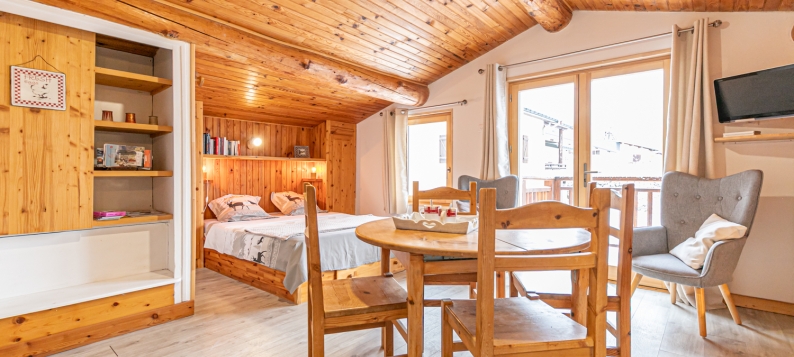 Our guest room Le Galetas 3 épis for 4 people, is located in Aussois on the first floor of our house, quiet under the attic. Oriented southeast, it offers an exceptional view of the border mountains and the Vanoise National Park. Located 3-4 mn walk from the slopes and shops, at the gateway to the Vanoise National Park.