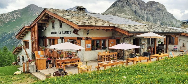 It offers panoramic views of the Vanoise and Haute Maurienne peaks. Welcome to the "Lo Tsamou" refuge, "Le Chamois" in local dialect. Perched at 2,060 m, it is a splendid destination for a walk (1h to 1h15) from the church of Saint Pierre d'Extravache, the first church in the Maurienne, a starting point for numerous hikes and a gourmet stopover. Joseph and Lola welcome you all summer and offer you their table. Relax on the terrace and contemplate the scenery while enjoying cheese and charcuterie, or Savoyard specialities such as Matouille (tomme fondue with potatoes and charcuterie), pavé de cerf.... (Meals for all budgets from €10) And if it's snack time: crêpes, tarts (...with wild rhubarb), real hot chocolate... Come and have an unforgettable time: stilts, coordination skis, tug-of-war, giant skittles, wheelbarrow races, ring games and wood sawing with a skeleton key. This last game is very funny: you have to saw a tree trunk with this big traditional two-person saw called passe-partout, and it's timed! Easy access from Bramans: head for St-Pierre d'Extravache RD 100 (5km), stop at the chapel parking lot. Continue on foot along the path signposted Lo Tsamou à Montbas. Alpine pasture without patoos.
