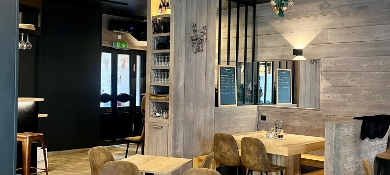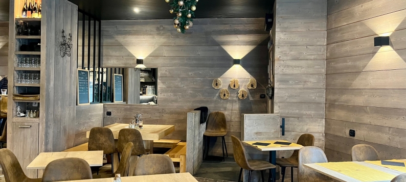 Cozy room with 40 seats and large south-facing terrace in the heart of the village and a stone's throw from the snow front.
