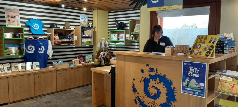 L'été, elle assure la réservation des randonnées accompagnées par les gardes-moniteurs du Parc et la vente de produits Parc (cartes postales, ouvrages, DVD ...).