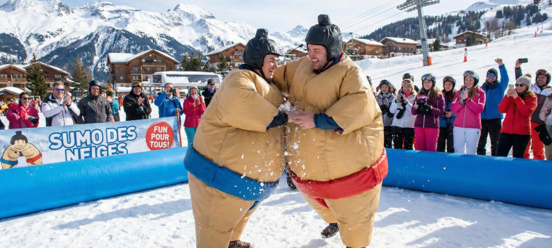 Come and put on our Sumo costumes and take up the challenge of our zany oppositions, with or without ski boots.
