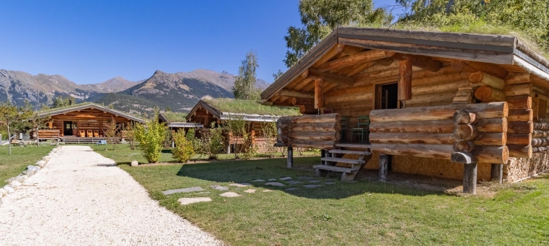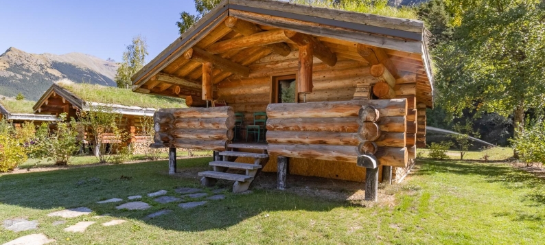 A découvrir ! Un hébergement atypique pour une expérience unique dans une ambiance Grand Nord aux portes du Parc national de la Vanoise. "Ma cabane en montagne" propose 4 chalets en bois bruts avec toiture végétale. Mobilier, décoration et services pro... Chalet de rondins de bois bruts avec toiture végétalisée. Un lit 2 personnes (draps inclus, lit fait). Literie écologique 100% pur laine. Toilettes sèches privatives. Espace détente. Réserve d'eau potable dans un huilier en inox. Chauffage avec poêle à bois. Terrasse abritée privative + espace extérieur commun. Salle d'eau commune dans une cabane indépendante (2 douches + 2 lavabos). Prestation en demi-pension exclusivement. Hébergement insolite dans 4 authentiques fustes en bois des Alpes. Conception écologique dans la construction et l'aménagement des chambres. Environnement immédiat naturel et préservé offrant calme et vue panoramique sur les montagnes et la célèbre Dent Parrachée. Décoration soignée valorisant un art de vivre "déconnecté" tourné vers la simplicité et la nature. La demi-pension fait partie intégrante du concept. Elle est à régler lors de votre séjour - 17 euros le repas du soir (8.50 euros pour les enfants -12 ans) - 8 euros le petit déjeuner (4 euros pour les enfants - 12 ans).