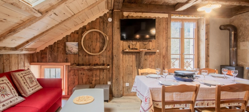 Une véritable atmosphère de refuge de montagne ! Ici, le bois est le principal matériau, du bois recyclé ou de récupération qui a permis la fabrication des portes, du mobilier sur mesure et le séjour qui affiche fièrement ses poutres apparentes… une en... Maison comprenant 4 gites, à 20 m de la maison des propriétaires. Gite au 2ème étage avec un accès indépendant : séjour-cuisine coin salon (poêle à bois), 3 chambres (chacune avec 2 lits 1 personne 80 x 200 cm jumelables en 1 lit 2 personnes 160 x 200 cm), une salle d'eau (douche avec WC), WC séparé. Surface totale au sol : 65 m² parties mansardées comprises. Buanderie commune en sous-sol avec lave-linge et sèche-linge. Radiateurs électriques dans les chambres. Terrasse commune (au gite 73G290153) avec un salon de jardin privatif. Billard en commun dans une salle au rez-de-chaussée. Située au bord du torrent le Doron, cette maison est située à 600 m des pistes de ski de Termignon / domaine Val Cenis Vanoise, avec une navette gratuite uniquement l'hiver. L'ambiance montagnarde s'inscrit dans la modernité pour ce gite sous les toits. Beaucoup de charme et de caractère pour un séjour dans un village authentique de Haute-Maurienne !