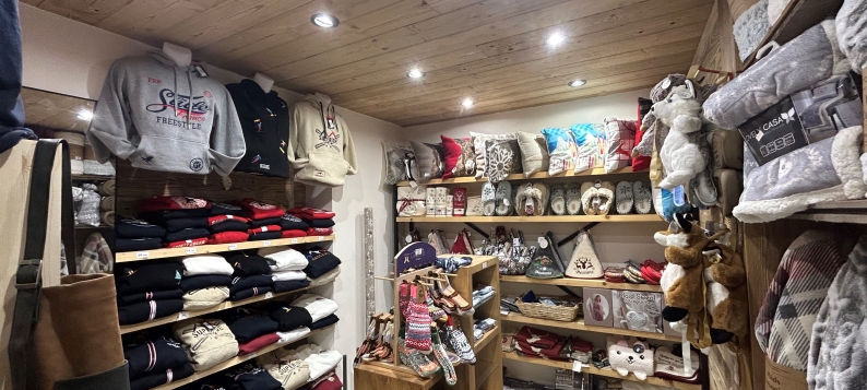 Déco, souvenirs, relais Opinel (personnalisation sur place possible), presse, FDJ, librairie, jouets et jeux, textile de maison et vêtements, point-gaz Camping-gaz...