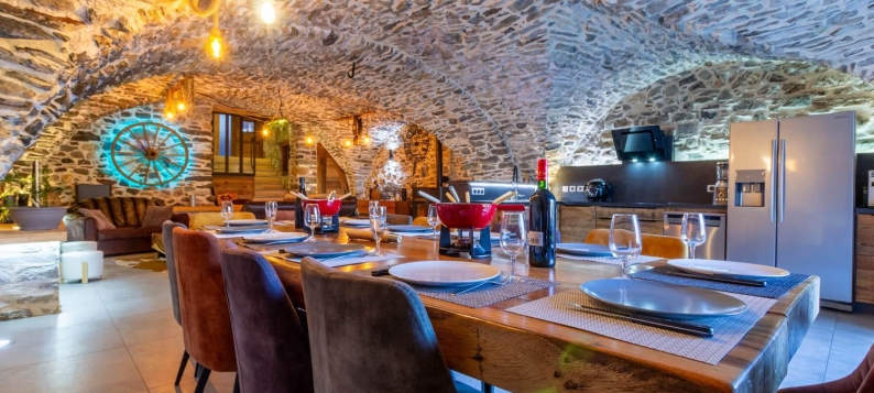 Situé à 650m des pistes de Aussois, station village de charme avec son domaine skiable de 80km de pistes et à 19km du télécabine d'Orelle pour Val-Thorens/3 Vallées (plus grand domaine skiable du monde avec 600km de pistes). Nombreux autres domaines sk... Maison de ville sur 4 niveaux. Au 1er étage (entrée de plain-pied depuis la rue) : entrée avec accès WC indépendant et buanderie, Au rez de chaussée : salon-séjour-cuisine accès terrasse. Au 2 ème étage : 2 chambres ( 1 lit 2 personnes 160x200 cm / 1 chambre avec 1 lit 2 personnes 140x190 cm + 2 lits 90x190), 1 salle d'eau indépendante (douche + WC). Au 3 ème étage : 2 chambres (1 lit 2 personnes 180x200 cm avec un coin douche et WC / 1 lit 2 personnes 160x200 cm avec un coin baignoire et WC ), salon télévision. Local à ski en pied de piste mis à disposition par le propriétaire. Dans les ravissantes petites rues d’Aussois, au cœur d’un village authentique, Le Moa vous ouvre ses portes pour un séjour placé sous le signe du confort. Son grand salon voûté en pierre, véritable cocon de charme, vous invite à vous retrouver en famille ou entre amis. En été, la spacieuse terrasse équipée d’un barbecue devient votre espace privilégié pour partager des repas en plein air ou simplement profiter du soleil alpin dans un cadre reposant.
