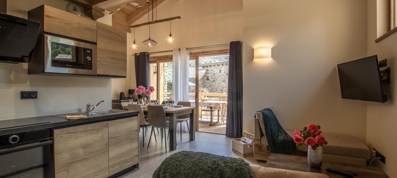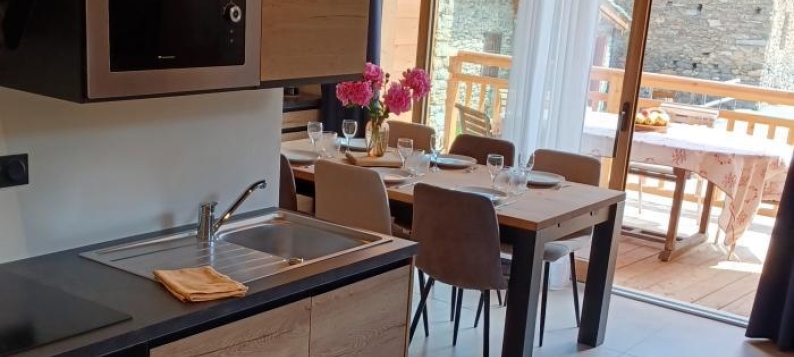 Superbe gite en duplex dans une résidence située entre les villages de Lanslebourg et Lanslevillard, à 300 m des pistes de ski. Nombreuses activités sportives et culturelles, animations durant l'été et l'hiver, sur Val Cenis et les villages authentique... Gite en duplex situé au 1er étage de la maison comprenant un séjour-cuisine coin salon (barre de son), 1 chambre 1 lit 2 personnes 160x200 cm composé de 2 lits 1 personne en 80x200 ) donnant sur un balcon et avec une mezzanine en sous-pente (1 lit 1 personne 90x190 cm - accès par un escalier raide déconseillé aux enfants de moins de 6 ans), une salle d'eau (douche), WC séparé. Etage par un escalier en colimaçon pour accéder à une mezzanine avec vide sur séjour (3 lits 1 personne 90x190 cm dont 2 lits superposés - lavabo). Surface totale au sol : 64 m² parties mansardées comprises. Balcon-terrasse avec salon de jardin. Buanderie en commun avec un autre gîte (lave-linge et sèche-linge) à l'extérieur, en rez-de-jardin. Sauna gratuit et en commun sur planning au rez-de-jardinde la maison (modalités d'accès, contacter le propriétaire) A l'entrée du hameau Les Grands Champs, la résidence composée de 5 logements est située à 300 m des remontées mécaniques et 2 km des commerces, magasins et services. L'hiver, l'arrêt de la navette à 100m facilitera vos déplacements entre Lanslebourg et Lanslevillard. L'entrée de la résidence offre un bel espace pour les locaux à ski privatifs, équipé d'un sèche-chaussures. Quelques places de parking sont possibles devant la maison avec une borne de recharge électrique en commun à l'extérieur (charge payante). A 50 m de la maison, un grand parking public gratuit permettra de vous garer en toute facilité.