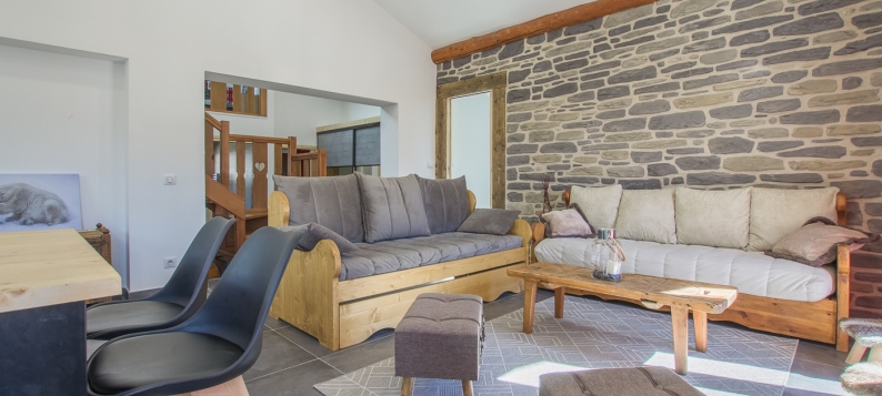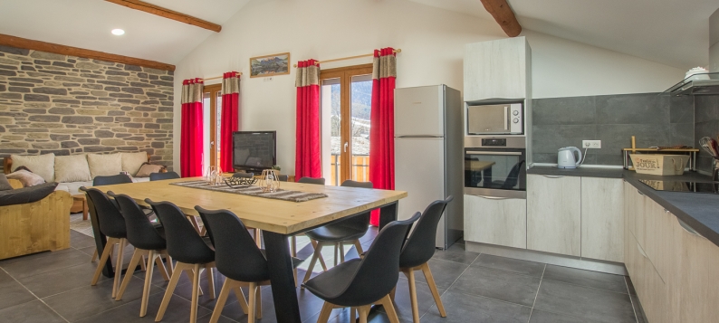 Situation privilégiée d'un village typique de Haute-Maurienne aux Portes du Parc National de la Vanoise, dans un environnement exceptionnel. Magnifiques promenades et randonnées vers des lacs et glaciers de montagne. Riche patrimoine baroque et militai... Gîte au deuxième étage de la maison des propriétaires, comprenant un autre gîte au premier étage. Séjour-cuisine-salon avec accès balcon exposé Sud. Buanderie. 3 chambres : 1 chambre 3 lits 1 personne, 1 chambre 2 lits superposés + 2 lits simples avec salle d'eau privative (douche+WC), 1 chambre 2 lits simple avec salle de bains privative (baignoire+WC). Salle d'eau avec WC. Une mezzanine dotée d'un lit simple et d'un lit double avec TV (idéal pour un deuxième salon enfants). WC indépendant avec lave-mains. Stationnement sur la propriété. Piscine intérieure partagée avec le second hébergement de 9h à 20h. Situation agréable en périphérie du village dans un environnement offrant verdure et vue dégagée sur les montagnes. A 500 m des pistes. Gîte de bon confort et bénéficiant d'une belle vue sur les sommets de Vanoise et de Haute-Maurienne. Commerces et services à proximité au cœur du village.