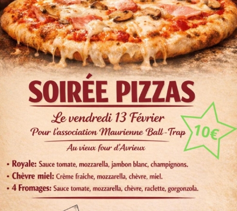 Soirée pizzas cuites au vieux four communal pour l'association Maurienne Ball Trap. Choix entre...