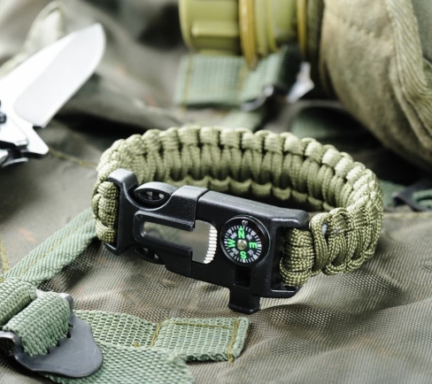 Une corde, un sifflet, une boussole, le tout solidement accroché autour de ton poignet : fabrique...