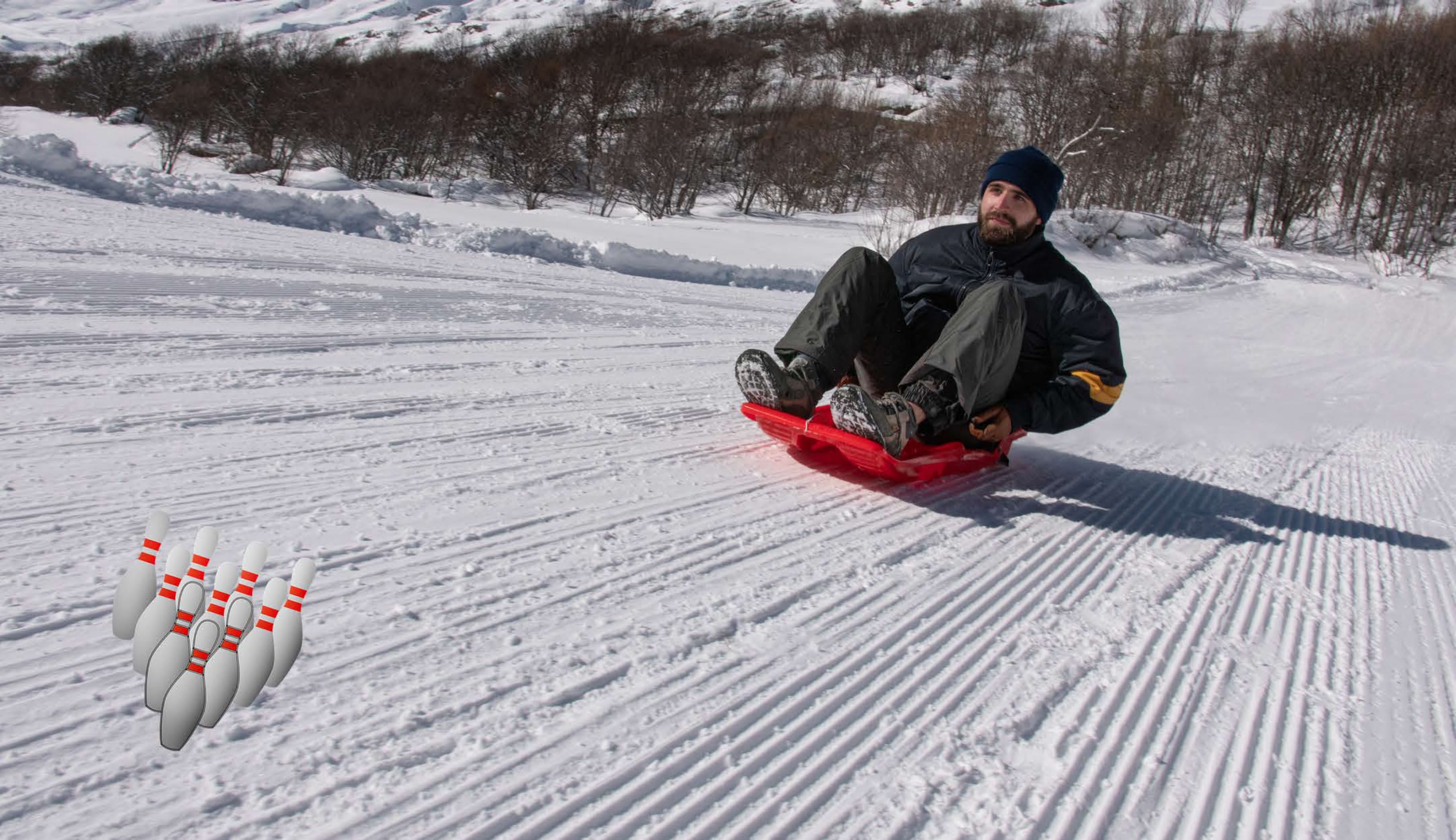 Connaissez-vous le bowling sur neige ? Comme au bowling, le but est de faire tomber le plus de quilles possible. Le jeu est simple : 6 quilles, une luge et beaucoup de fun.