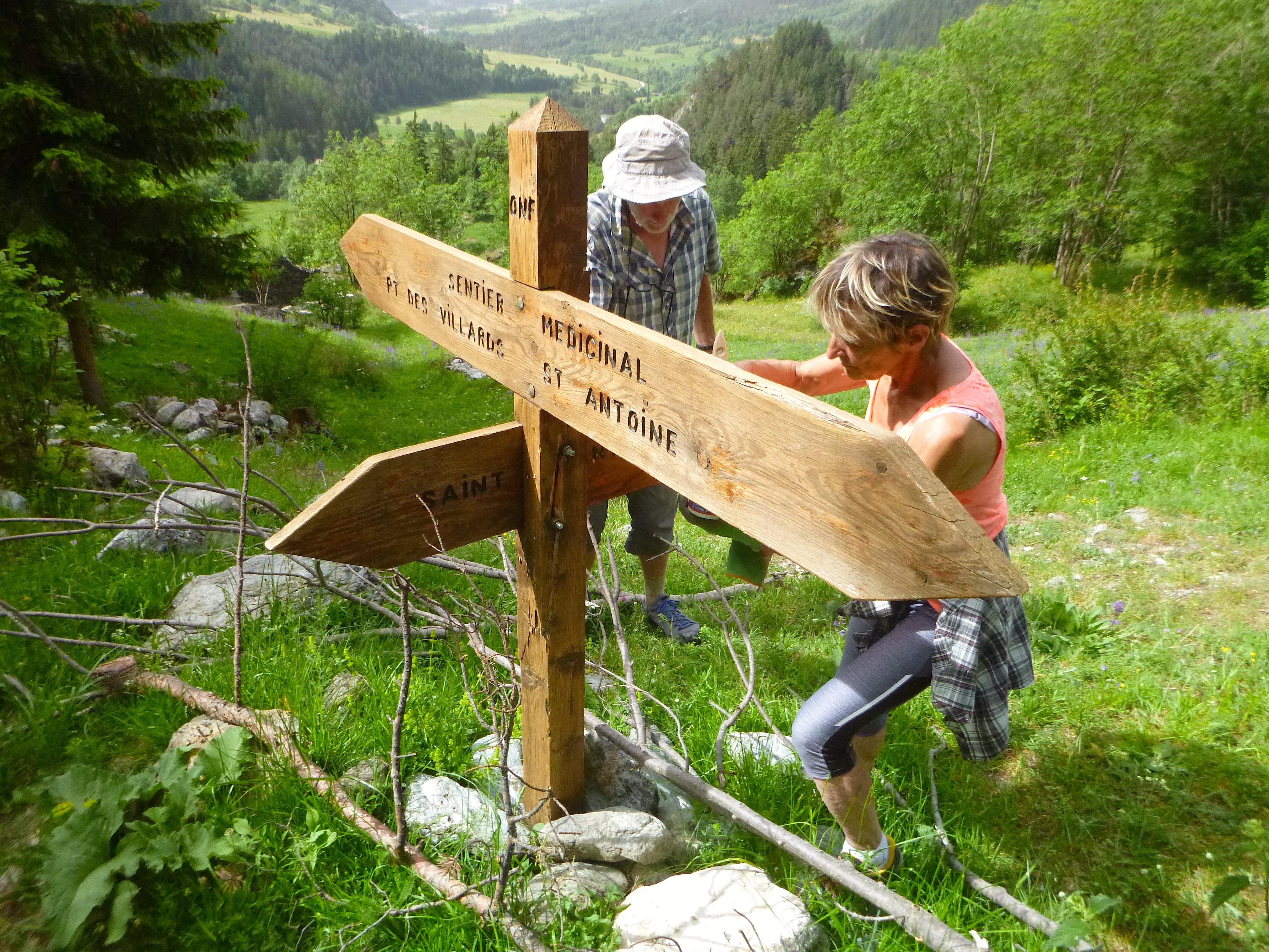 Entretien d’un panneau sur la Voie des Plantes Association Patrimoine et Développement de Termignon