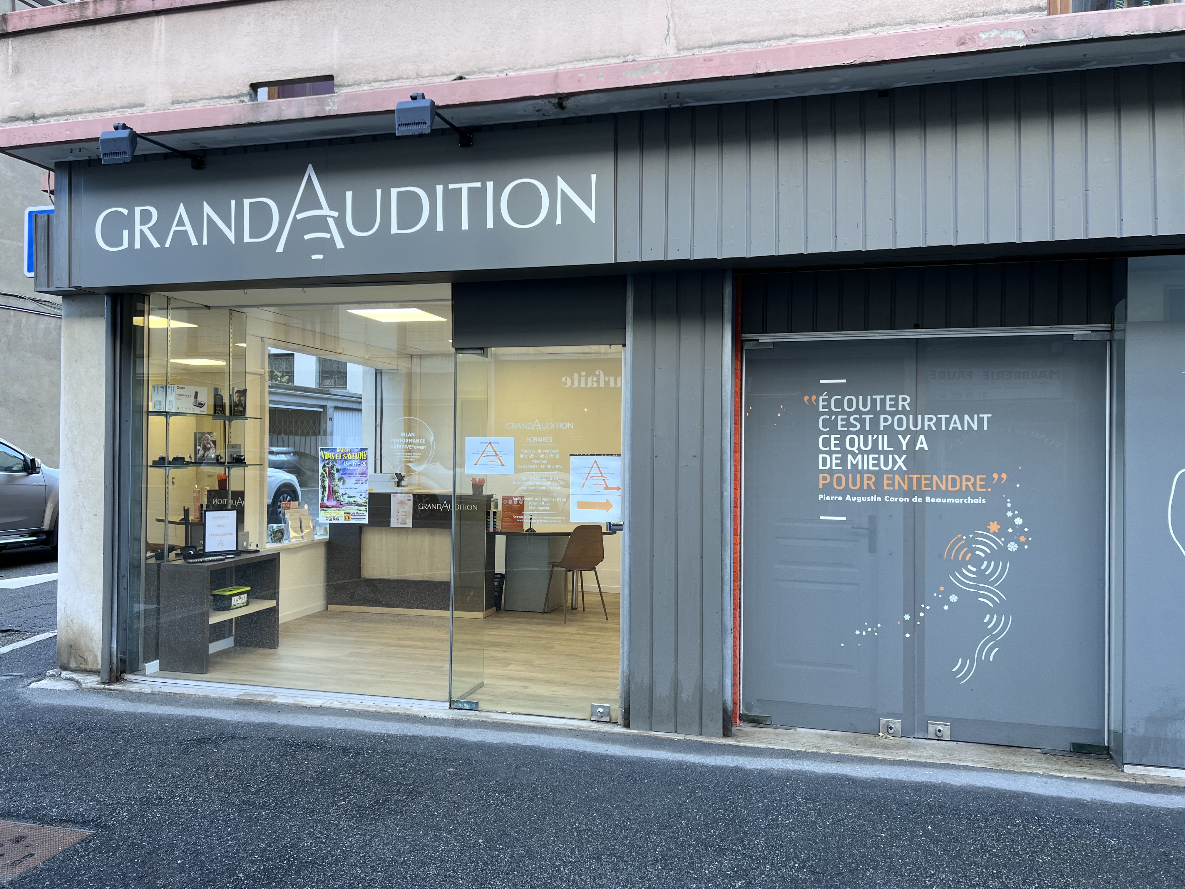 Créée en 2005, GrandAudition est une marque reconnue dans le secteur de l’audition. Toujours à la pointe de la technologie, GrandAudition propose une large gamme d’aides auditives répondant aux attentes de nos clients. Au travers de son excellence et de ces valeurs, GrandAudition place l’humain au cœur de sa relation client en offrant un service de haute qualité et sur-mesure. Nos audioprothésistes diplômés d’Etat sont présents pour répondre à vos questions et vous accompagner à retrouver une audition confortable. Pour faire le point avec votre audition, profitez dès maintenant de votre bilan de performance auditive offerte (test non médical).