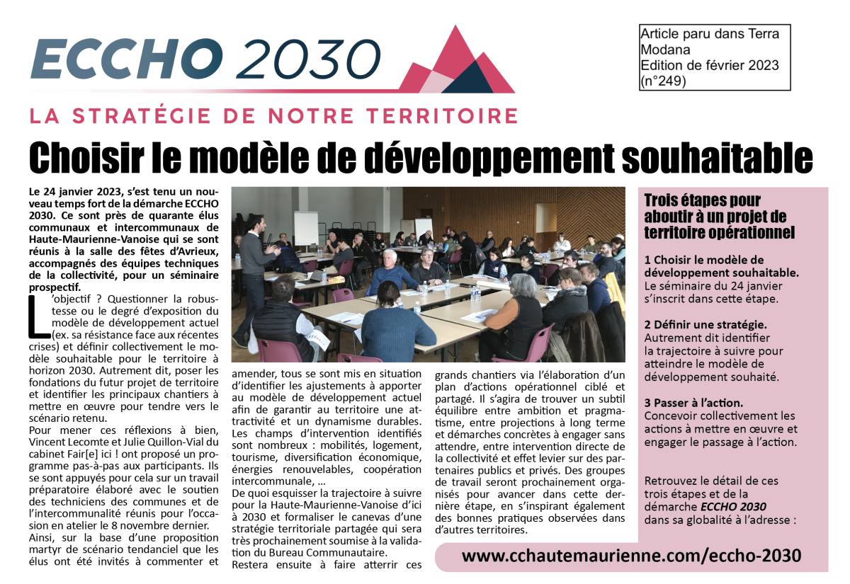 La démarche ECCHO 2030, initiée en décembre 2020, a pour but de faire émerger et de mettre en place un projet de territoire pour la Haute Maurienne Vanoise, dans la décennie à venir.