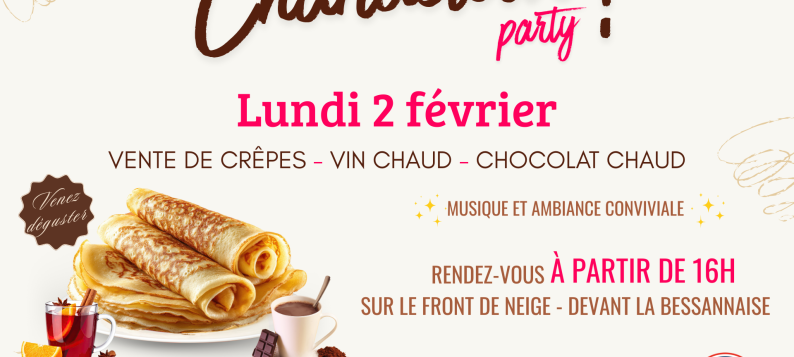 We look forward to seeing you at the Chandeleur Party on the snow front for a warm après-ski! Whether you're a skier, a hiker or just a stroller, come and share a festive, gourmet and convivial moment... Pancake sales, mulled wine, hot chocolate and cider on the La Bessannaise snow front.