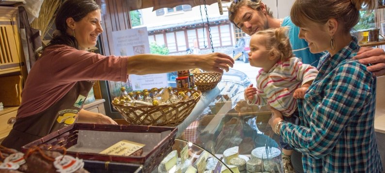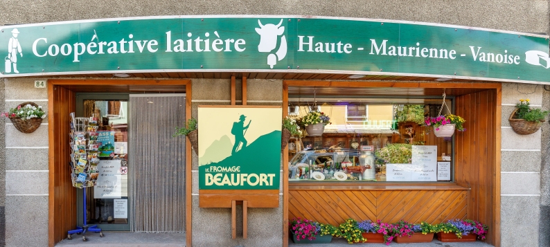 Located in the center of the village of Lanslebourg, on the main street of Mont-Cenis this second point of sale of the Cooperative Laitière Haute Maurienne Vanoise, completes the range of products that you will find at the cheese dairy 300 meters further. You will find in our store our products sold in short and fair trade: Beaufort AOP, Bleu de Bonneval sur Arc, butter, milk as well as farm products made in Haute Maurienne (goat and sheep cheeses, farmhouse yogurts), and a wide range Savoy products (cheeses, Mont Charvin cold meats, jams, honey, Bernard cookies, Savoy wines, Génépi, cured meats, etc.).