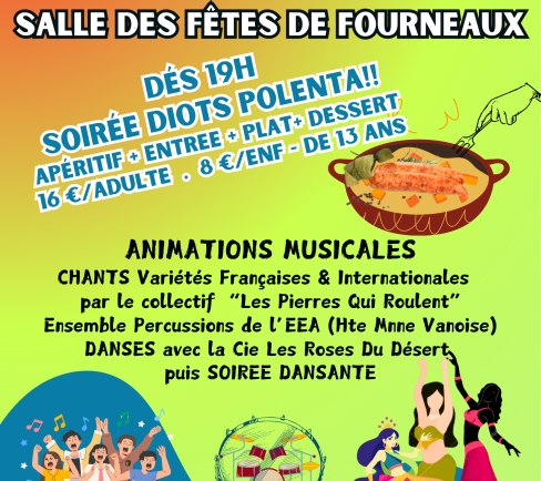 Festive evening with diots polenta and musical entertainment (final evening of dancing) to raise...