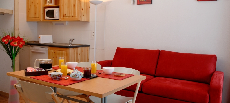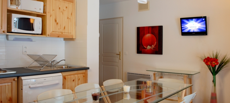 In the kitchenette, you'll find 4 hotplates, a fridge, a microwave, a coffee maker, a toaster and a dishwasher.