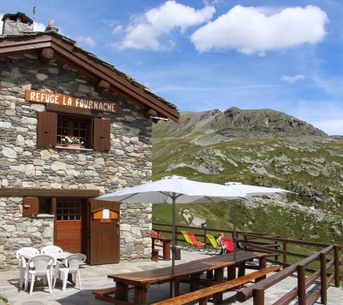 Découvrez le refuge de la Fournache, surplombant les barrages de Plan d'Amont et d'Aval au pied...